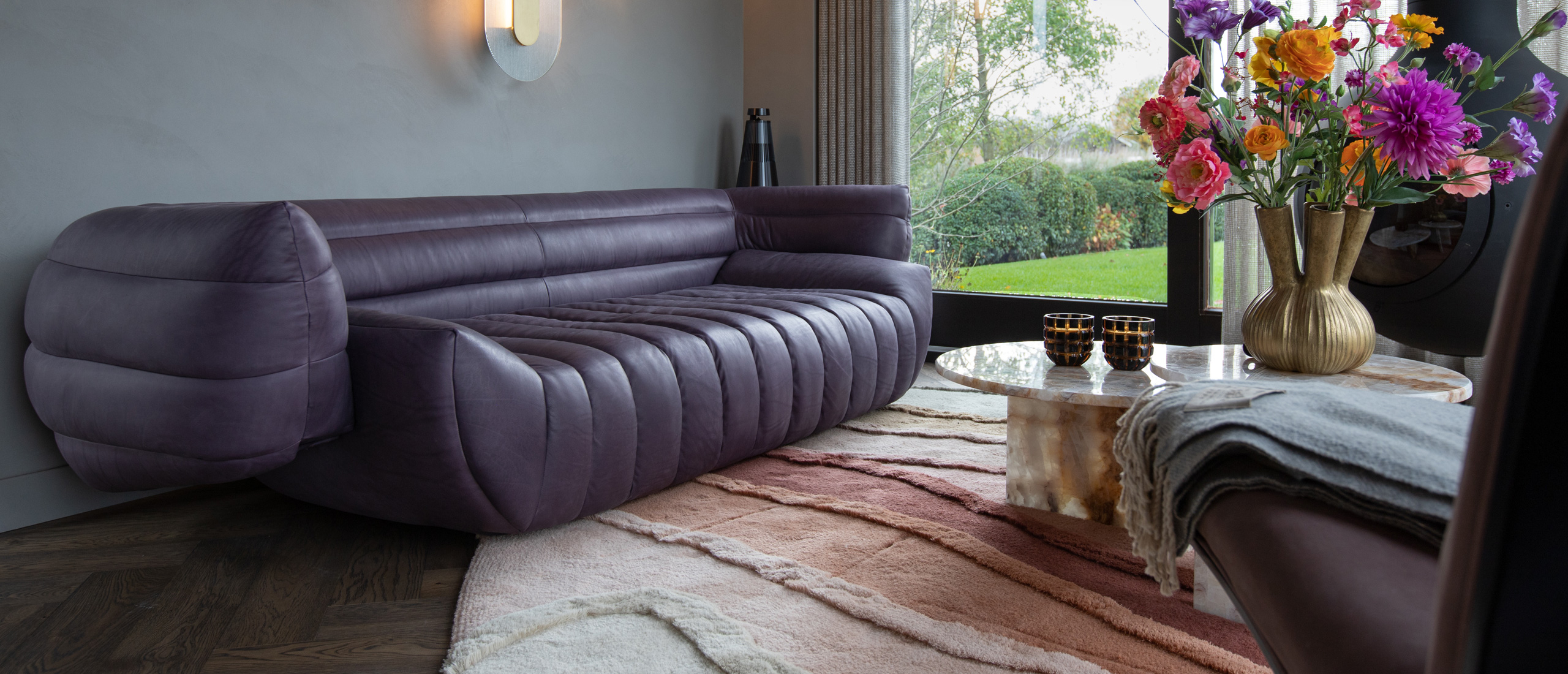 Een uitgesproken contrast én blikvanger vormt het vloerkleed van het Belgische label Limited Edition. Het Allegro High kleed, uitgevoerd in een organische vorm, fungeert als een kleurrijk statement piece binnen het interieur. De speelse contouren en rijke kleuren brengen dynamiek en geven het interieur een eigen signatuur, zonder afbreuk te doen aan de rust en balans van de ruimte.
